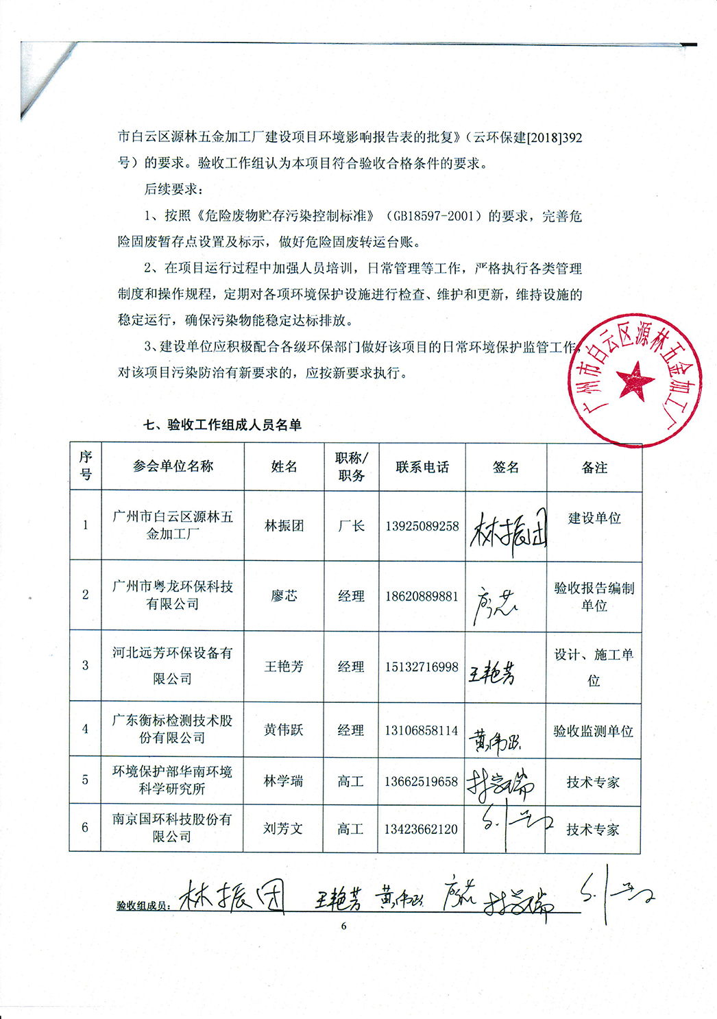 驗收工作工作組意見 6